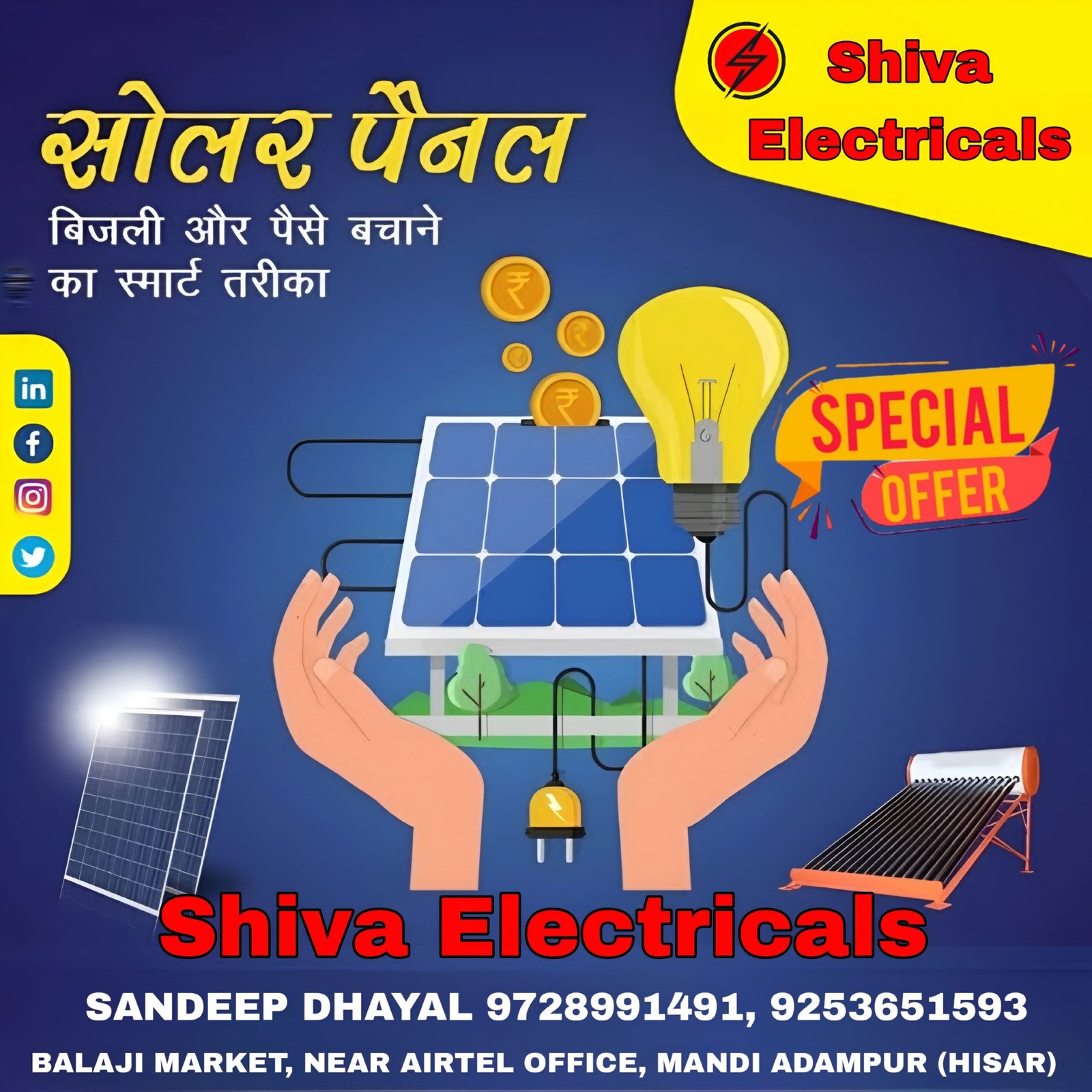 Contact for solar system, inverter battery, solar air conditioner and any electricals services like contract for electrical works and any commercial industrial connections